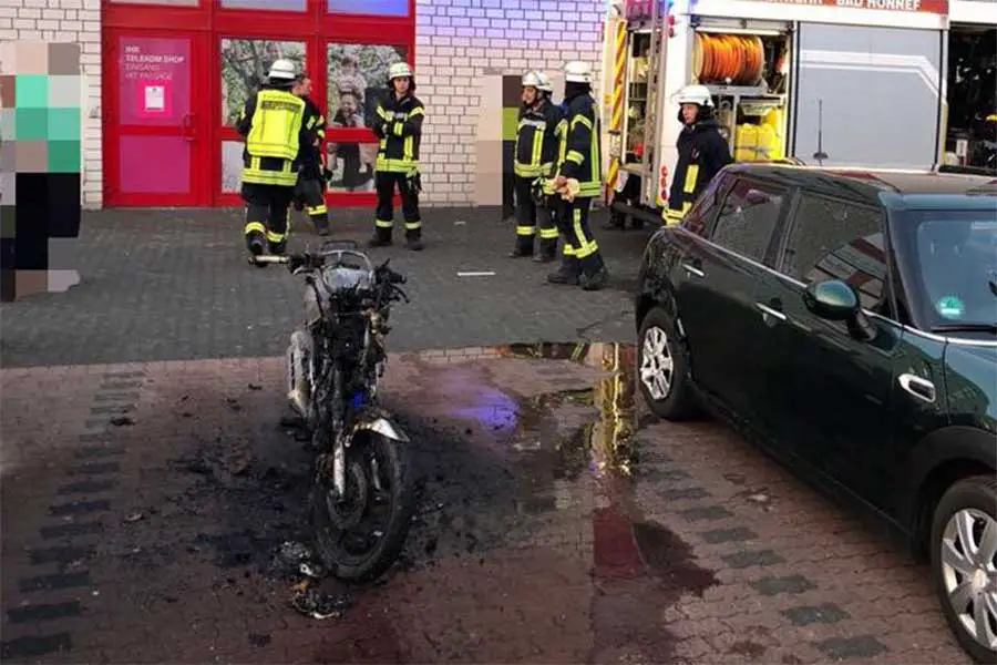 Bad Honnef-Selhof | Ein Motorrad geriet gestern gegen 17:30 Uhr auf einem Parkplatz in der Berck-sur-Mer-Straße in Brand. Ein Passant brachte das Feuer mit einem Feuerlöscher unter Kontrolle. Mitglieder des Löschzugs Bad Honnef erledigten die Nachlöscharbeiten.
