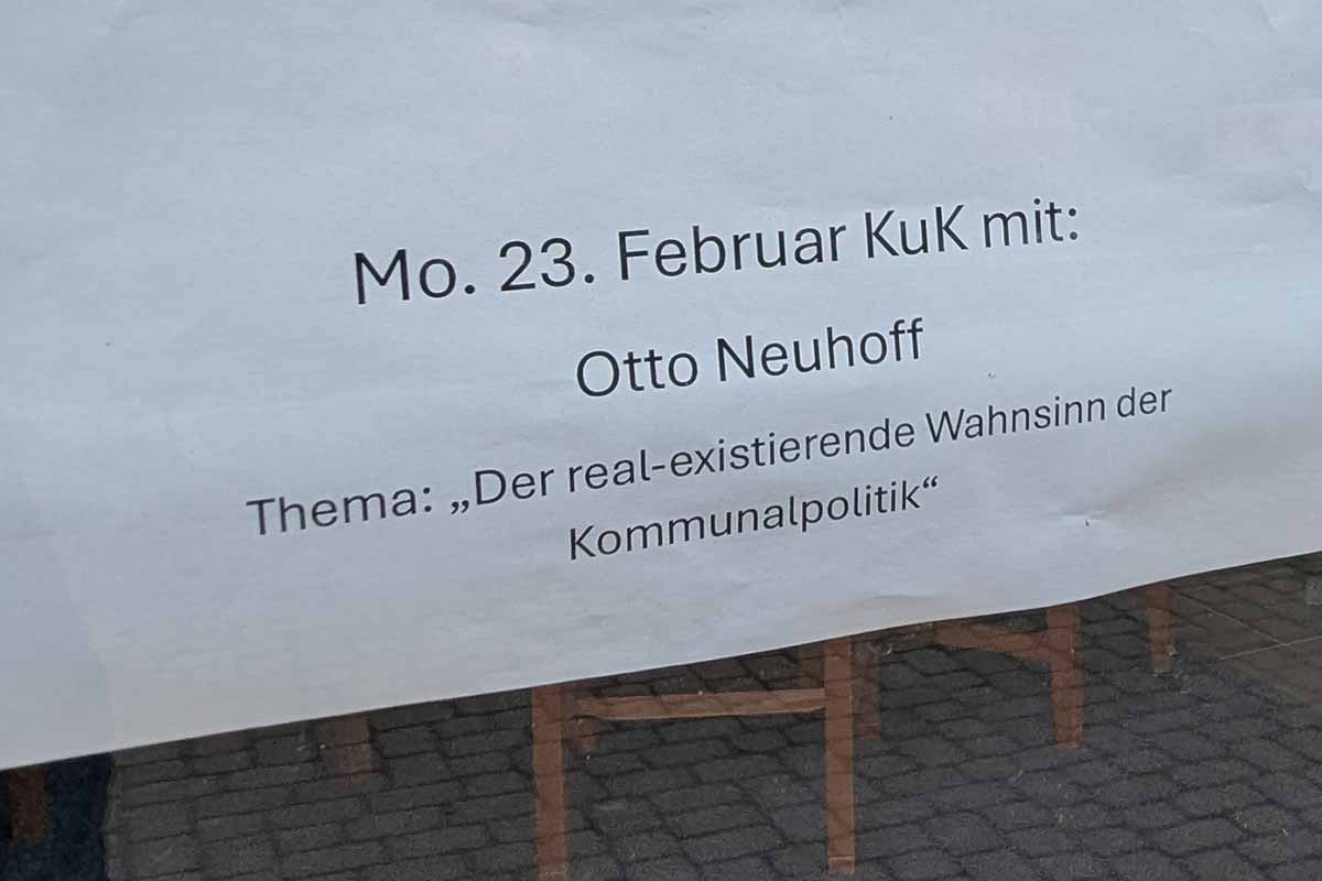 Bad Honnefs Ex-Bürgermeister Otto Neuhoff steht wieder im Fokus der Öffentlichkeit. Am 23. Februar spricht er im Rhöndorfer Heimathaus über sein Lieblingsthema: „Der real-existierende Wahnsinn der Kommunalpolitik“. Man darf gespannt sein, worauf sich sein Nachfolger Philipp Herzog da eingelassen hat.