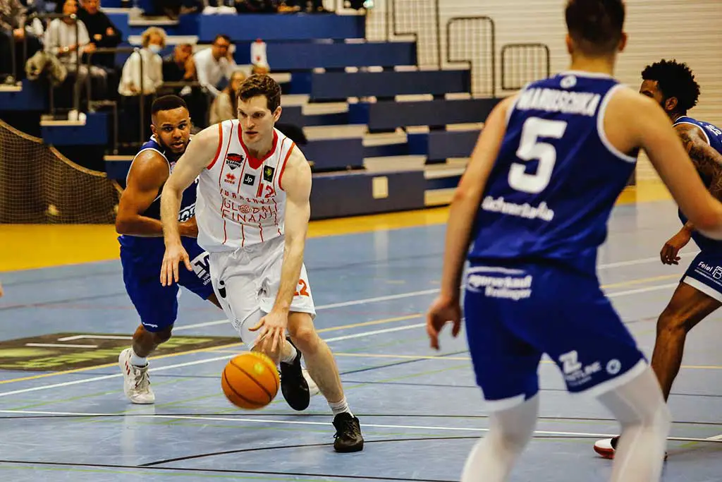 Dank strammen 56% von jenseits der 6,75-Meterlinie ging es mit einem 34:23 aus Sicht der Dragons ins zweite Viertel, wo die Gäste in Person von Jalen Gibbs jedoch die ersten Duftmarken setzten und auf 34:30 verkürzen konnten. Es blieb ein schnelles und enges Spiel, auch weil die Pointers nicht wie ein Tabellenletzter aufspielten und mit teils schnellen Ballbewegungen die Drachen-Defense auszuhebeln wussten. Nach unterhaltsamen 20 Minuten baten die Schiedsrichter schließlich beim Stand von 55:49 beide Mannschaften zum Pausentee in die Katakomben der Sporthalle Sankt Katharinen.