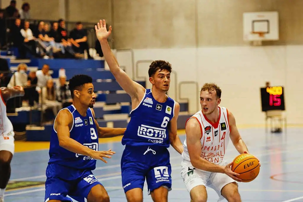 Getreu dem Motto „Defense leads to Offense“ schraubten die Dragons an ihrer Führung und konnten einen vermeintlich bereits beruhigenden Score von 82:64 mit ins letzte Viertel des Abends nehmen. Doch sehr zum Unmut ihrer Coaches schlich sich nochmals der Schlendrian ins Spiel der Drachen ein. Die Pointers kamen nach einem 10:2-Lauf noch einmal bedrohlich heran (84:74). Angetrieben von einem wie entfesselt aufspielenden Jalen Tyler Gibbs arbeiteten sich die Mittelhessen nochmals Punkt um Punkt zurück in die Partie. Ein wichtiger Korb durch Paul Albrecht trotz Fouls sollte letztlich den Willen der Gäste brechen und den Weg zum am Ende hart erarbeiteten 97:85-Erfolg ebnen.