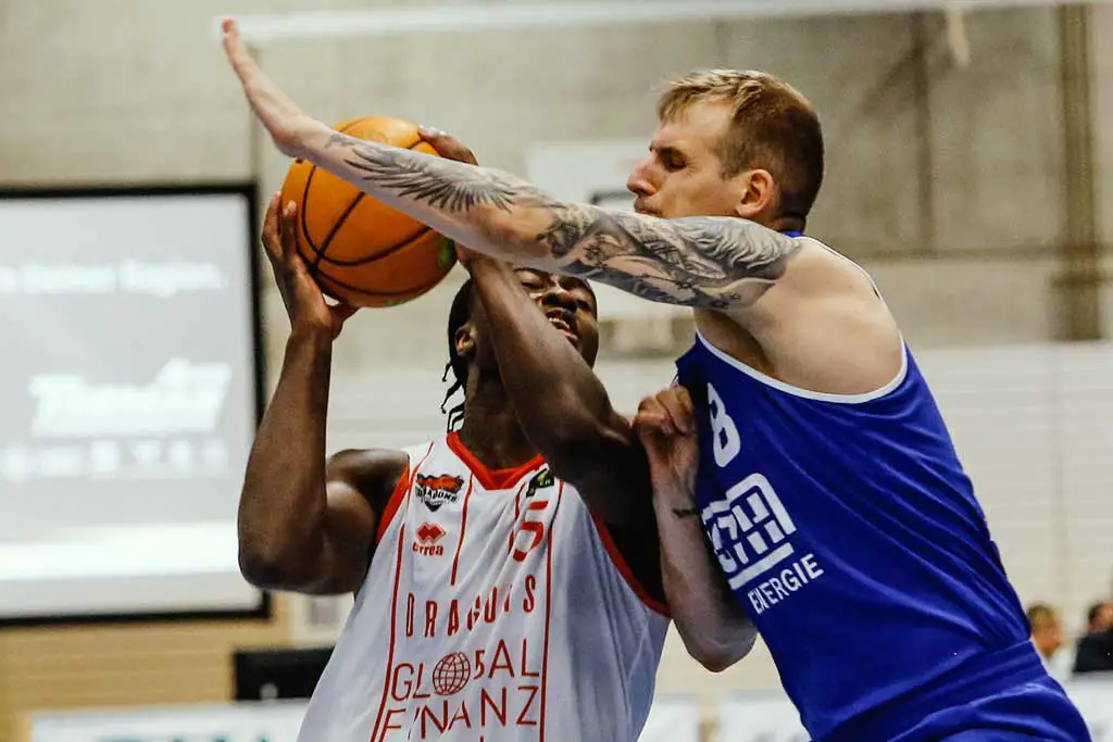 Mit seiner obligatorischen Starting Five um Devon Goodman, Paul Albrecht, Nicolas Buchholz, Florian Koch und Zaba Bangala begann Headcoach Julius Thomas die finale Partie der Dragons in Sankt Katharinen, und die Fans bekamen auf Anhieb den ersten Grund zum Jubeln geboten. Routinier Florian Koch versenkte nach wenigen Sekunden seinen Wurf von Downtown und brachte die ersten Punkte aufs Tableau des Heimteams.