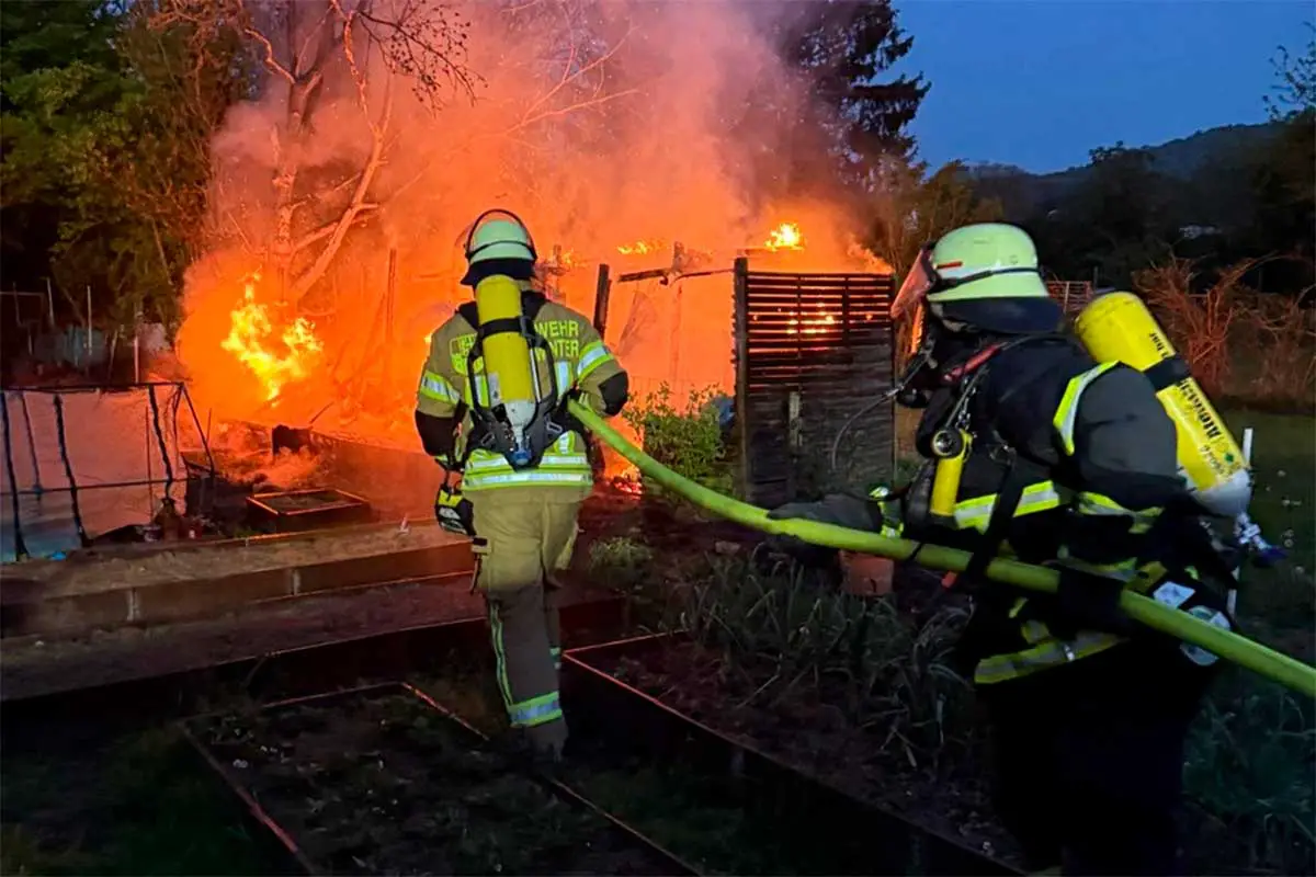 Die Feuerwehr wurde um 20.43 Uhr alarmiert. Beim Eintreffen der ersten Kräfte brannte die Hütte bereits vollständig. Unter Atemschutz gelang es den Einsatzkräften jedoch schnell, das Feuer mit einem C-Rohr unter Kontrolle zu bringen und eine Ausbreitung auf umliegende Vegetation sowie benachbarte Hütten zu verhindern. Die Gartenhütte selbst wurde durch den Brand vollständig zerstört.