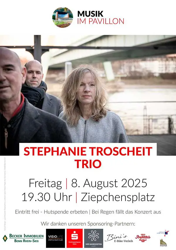Bad Honnef-Rhöndorf – Am Freitagabend dürfen sich Jazzliebhaber auf ein ganz besonderes musikalisches Ereignis freuen: Im Rahmen der Konzertreihe Musik im Pavillon gastiert das Stephanie Troscheit-Trio mit einem internationalen Programm unter dem Titel French Connection. Die außergewöhnliche Formation verspricht einen Abend voller musikalischer Überraschungen, intensiver Spielfreude und virtuosem Zusammenspiel.