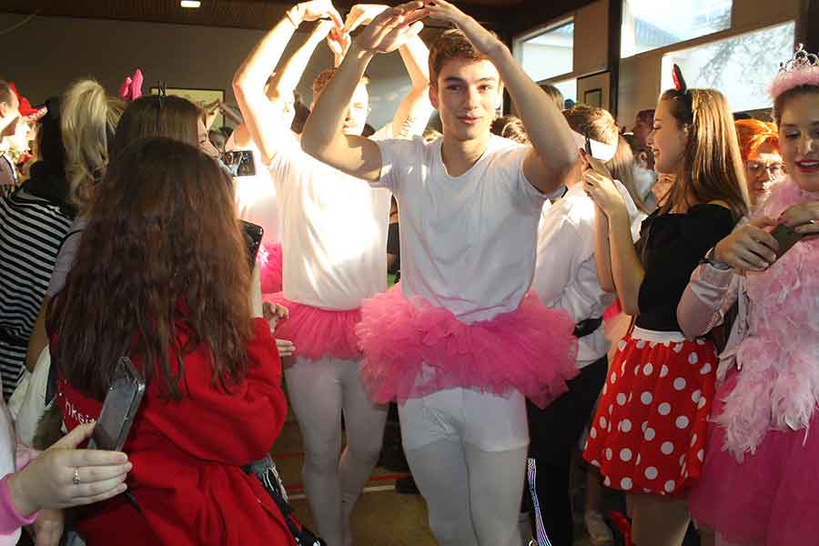 Zum größten Vergnügen der Schülerinnen und Schüler brachten die Lehrer mit einer Tanzeinlage die Bühne zum Beben. Unbestrittener Höhepunkt: das Jungenballett der jetzigen Abiturienten. Standing Ovations.