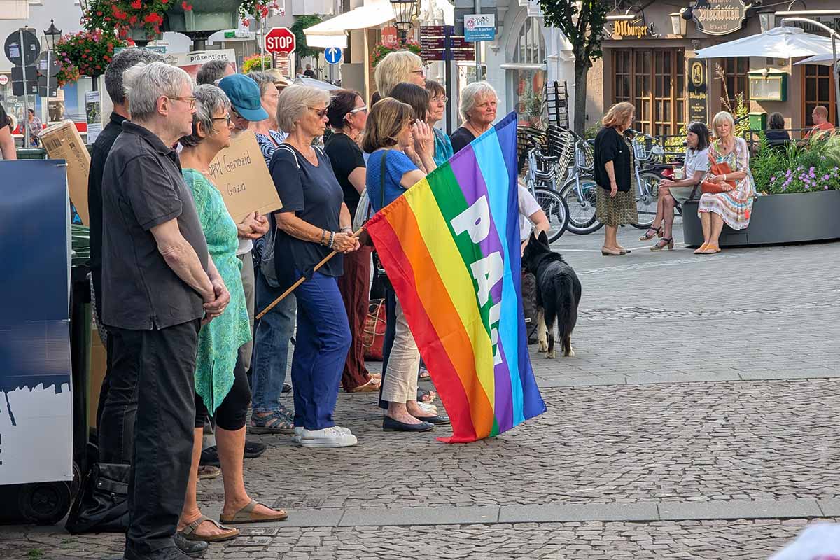 Bad Honnef – Angesichts der dramatischen Entwicklungen im Nahen Osten setzte die Amnesty-Gruppe Bad Honnef am heutigen Dienstag ein deutliches Zeichen für Menschlichkeit, Völkerrecht und Mitgefühl. Über 50 Teilnehmerinnen und Teilnehmer versammelten sich auf dem Marktplatz der Stadt zu einer Mahnwache, die sowohl das Leid der Zivilbevölkerung in Gaza als auch das Schicksal der israelischen Geiseln in den Mittelpunkt rückte.