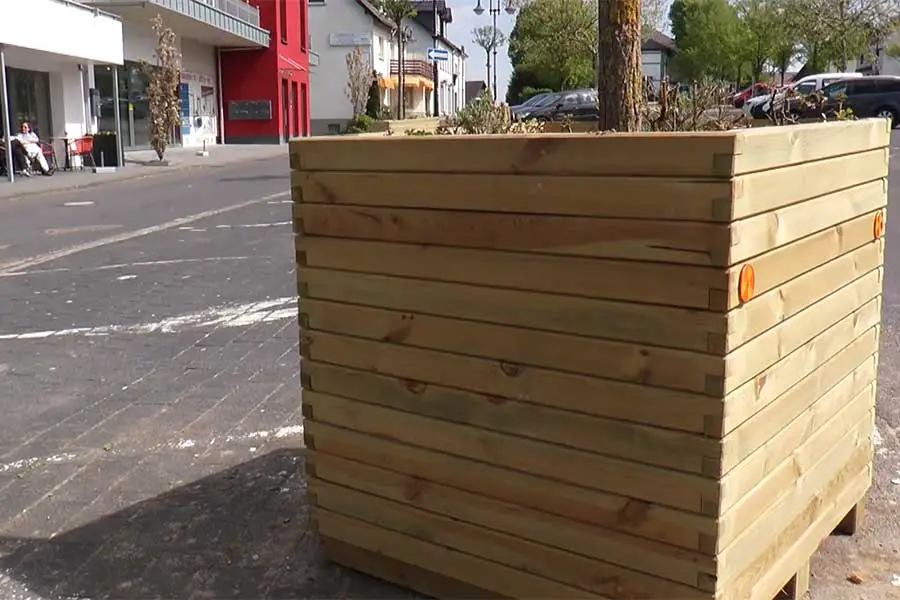 Die Gärtner waren Jörg Adelt und Roman Paul, die insgesamt sechs Holzkübel zimmerten und mit zwei Kubikmetern Erde befüllten.