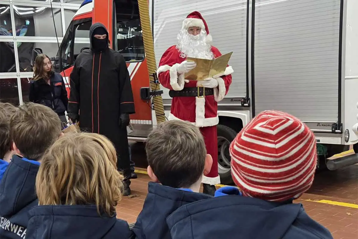 Der Bürgermeister ließ es sich nicht nehmen, den zukünftigen Brandschützern für ihr Engagement zu danken und brachte Schokoladen-Weihnachtsmänner als süßen Gruß mit. Der Nikolaus wiederum verteilte kleine Geschenke an die Kinder und lobte ihren Einsatz in der Feuerwehr. Gemeinsam sorgten die Gäste für eine festliche Stimmung und jede Menge Vorfreude auf die Weihnachtszeit.
