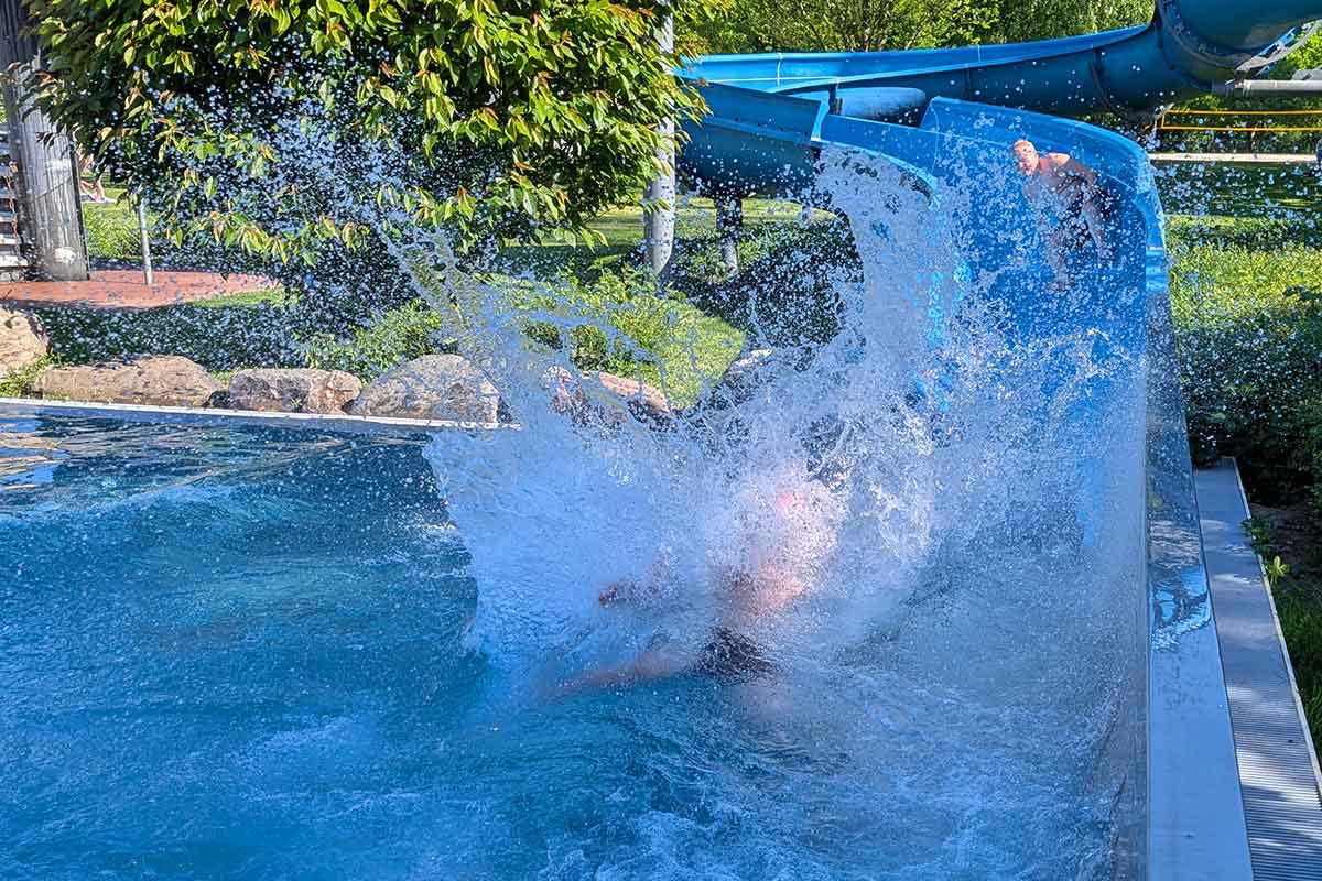 Während die Mutigen sofort vom 3-Meter-Brett ins kühle Nass sprangen, drehten andere entspannt ihre Bahnen. Ein Dauerbrenner wie eh und je: die beliebte Rutsche. Mit Begeisterung sausten die Kinder ins angenehm temperierte Wasser.