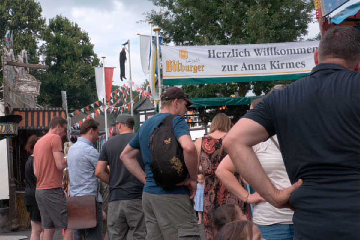 Ebenfalls fester Bestandteil der Anna-Kirmes: Die ersten Gläser Kölsch werden vom neuen Schützenkönigspaar verteilt. Seit einer Woche bekleiden Markus Moor und Marie Heinen dieses Amt.