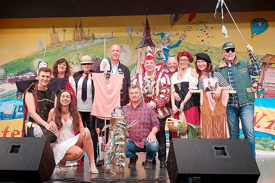 Pickepackevoll war die Bühne anschließend beim Auftritt der befreundeten Karnevalsvereine aus dem Siebengebirge und dem Asbacher Land. Dabei wurde auch der KG-Sessionsorden verliehen. Der TC Blau-weiß Windhagen präsentierte zwei Top-Tänze mit viel Akrobatik. Finale war mit dem Elferrat und den Elferratsfrauen, die in Stipvisiten aus dem Tagesgeschehen und närrischen Aktivitäten des Prinzenpaares berichtete.