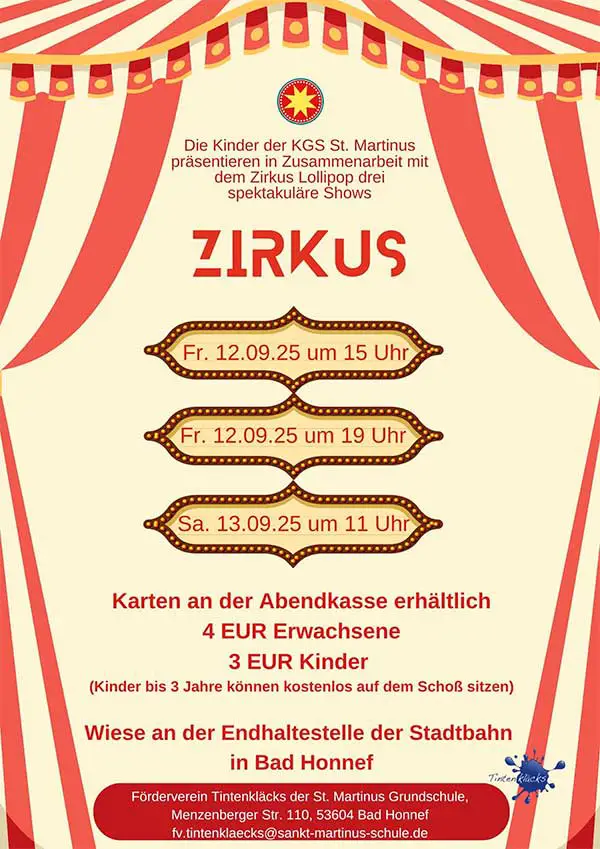 Bad Honnef – Alle vier Jahre verwandelt sich der Alltag der Kinder der Sankt Martinus Grundschule in eine lebendige Zirkuswelt: Im Rahmen einer besonderen Projektwoche besucht uns seit Montag der Zirkus „Lollipop“ und erarbeitet mit allen Schülerinnen und Schülern faszinierende Darbietungen wie Feuerschlucken, Trapezkunst und Clown-Nummern.